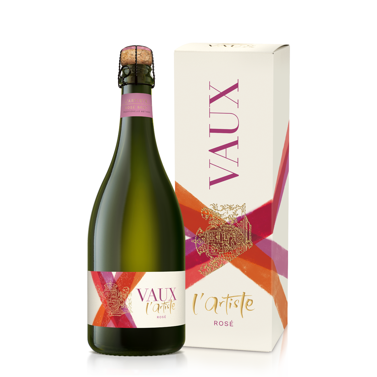 Eine Flasche l'Artiste Rosé in einer hochwertig geprägten Geschenkverpackung. Denn l’Artiste lädt dazu ein, jeden schönen Moment der Gemeinschaft zu feiern.